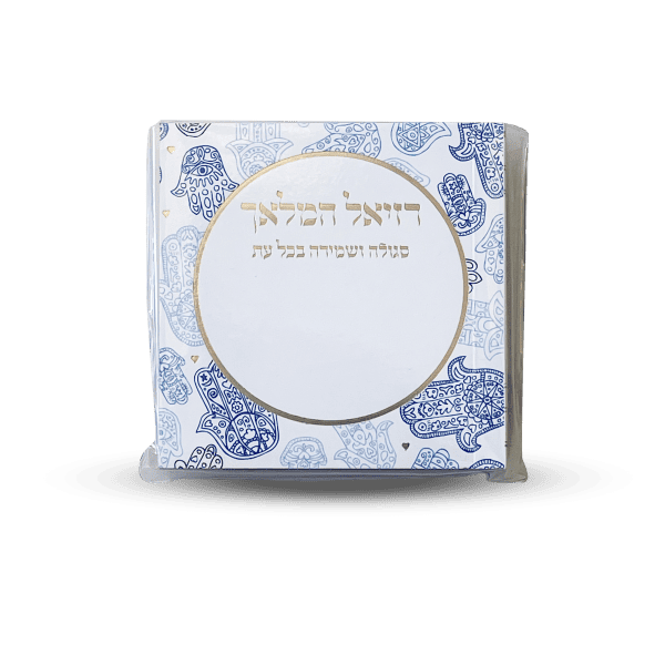 רזיאל המלאך לשמירה דגם חמסה כחול הספר מגיע בנרתיק P.V.C לשמירה. גודל: 8/8