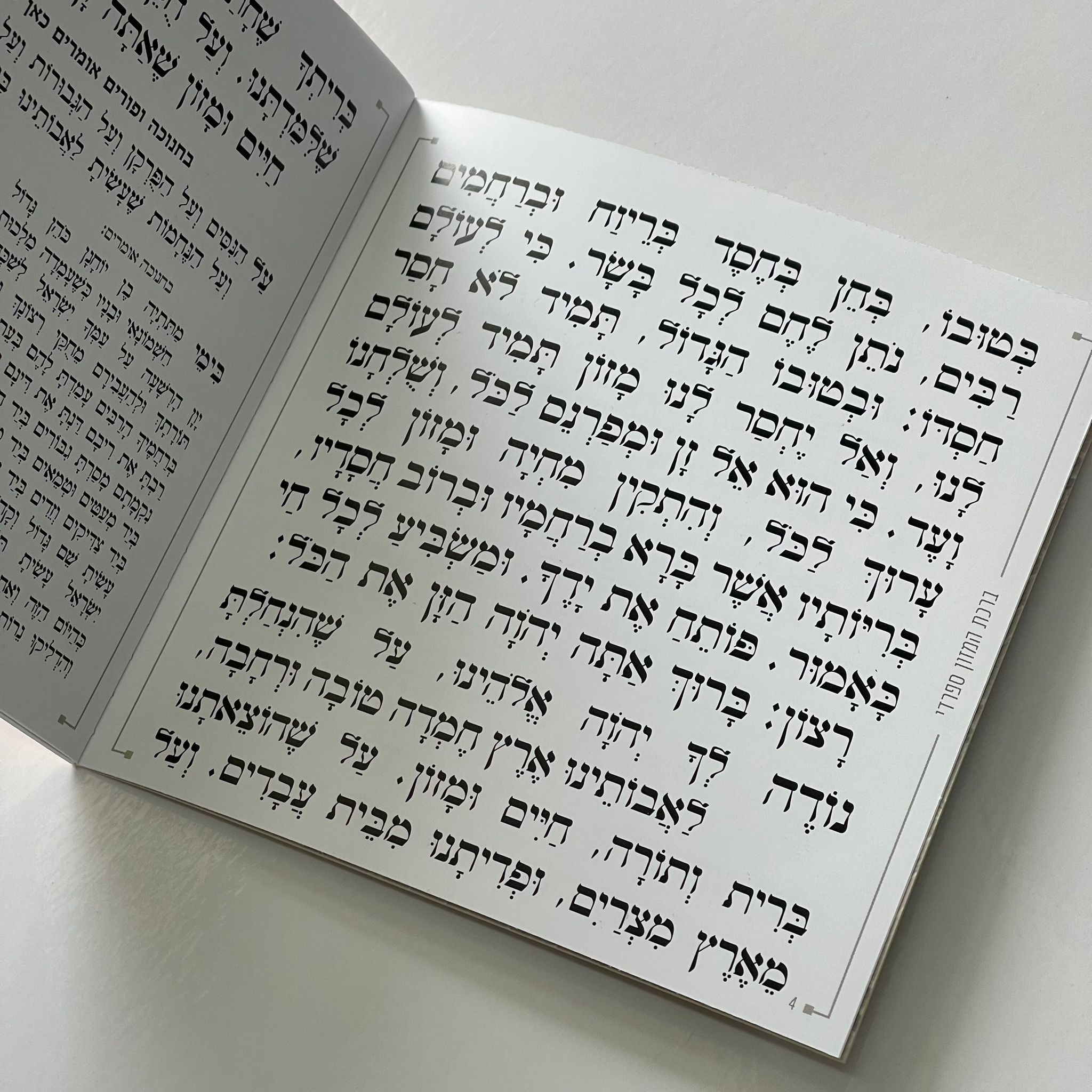 נוסח משולב ספרדי ואשכנזי כולל ברכת הנהנין, ברכת מעין שלוש ושבע ברכות.