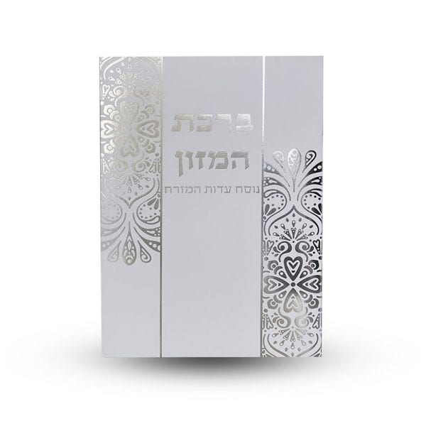 ברכון ברכת המזון, ברכה מעין שלוש ושבע ברכות. נוסח עדות המזרח. הבלטות מזהב או כסף בעיצוב מיוחד ומרשים. אותיות גדולות. 8 עמודים. רוחב: 16.5 ס"מ. אורך: 23.5 ס"מ