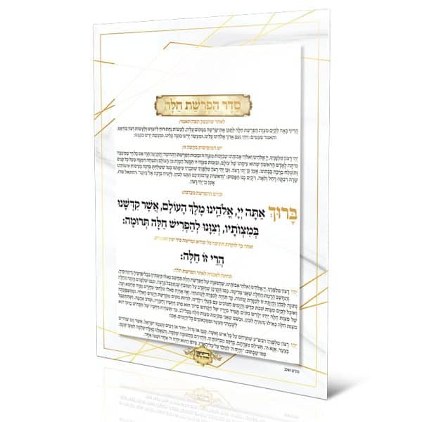 סדר הפרשת חלה, מצופה למנציה נגד מים. אותיות גדולות ומאירות עיניים. גודל A4
