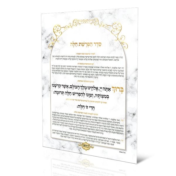 סדר הפרשת חלה, מצופה למנציה נגד מים. אותיות גדולות ומאירות עיניים.