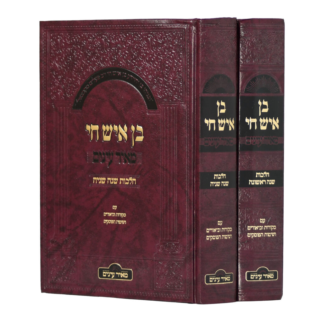מחפשים ללמוד הלכה בצורה בהירה, מקיפה ומחוברת לפסיקה של ימינו? ספר "בן איש חי", יצירת המופת של רבינו יוסף חיים מבגדאד, מוגש לכם כעת בסט "בן איש חי מאיר עיניים" (2 כרכים) – מהדורה חדשה, מפוארת ומונגשת שמשנה את חווית הלימוד מקצה לקצה.