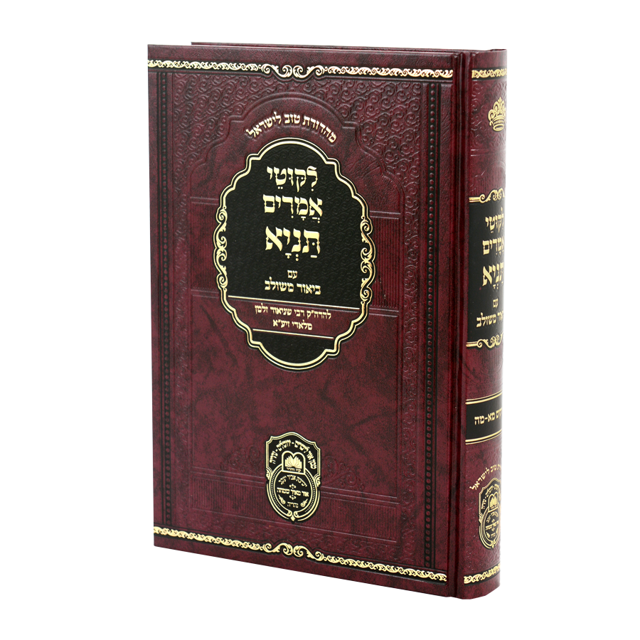 ליקוטי אמרים תניא' להרה"ק רבי שניאור זלמן מלאדי זיע"א, במהדורה חדשה ומפוארת. עם ביאור משולב בתוך דברי רבינו המחבר זיע"א, כדי להועיל להבנת הדברים, ובתוספת ציונים והרחבות. עם ילקוט ביאורים נרחב פירושים והוספות לדבריו הק'. כל הספר הוגה עפ"י דפוסים ישנים, עם הוספות ותיקונים רבים. נסדר מחדש, עם חלוקה לקטעים, סימני פיסוק, כותרות לכל קטע. כל אלו נסדרו בכלי מפואר, כמיטב ספרי 'ממלכת התורה עוז והדר'.