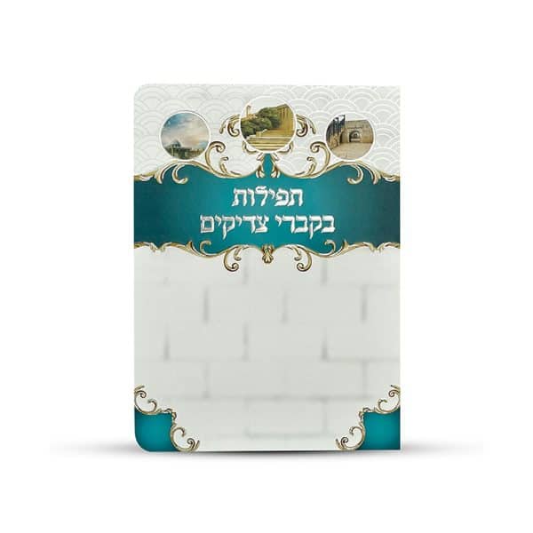 תפילות בקברי צדיקים. עם הטבעה מזהב, עיצוב ייחודי ובלעדי. תפילה על קברי צדיקים. תפילה בכותל המערבי. תפילה לגאולת השכינה. תפילה לשלום עם ישראל. ציפוי למינציה. גודל: רוחב 11 ס"מ. אורך 16 ס"מ.